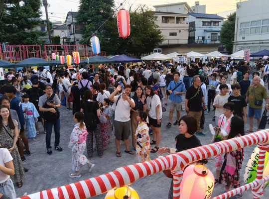 令和7年8月23日(土)、24日(日)の2日間の「納涼盆踊り大会」が無事に終了しました。お盆のあとに開催するのは初めてでしたが、お天気にも恵まれてたくさんの来場者がありました。今年は急にITSCOMからの日曜日の取材依頼がありましたので、ぶんかちゃんも特別に日曜日も登場してもらいました。新しい試みとして「ぶんかちゃんと写真を撮ろう」としたところ、たくさんの子ども達が一緒に写真を撮って楽しんでいました。今年も女性部、親和会、商店街、おやじの会、慶應義塾大学競走部など地域の皆さんの力を借りながら開催することができました。ありがとうございました。