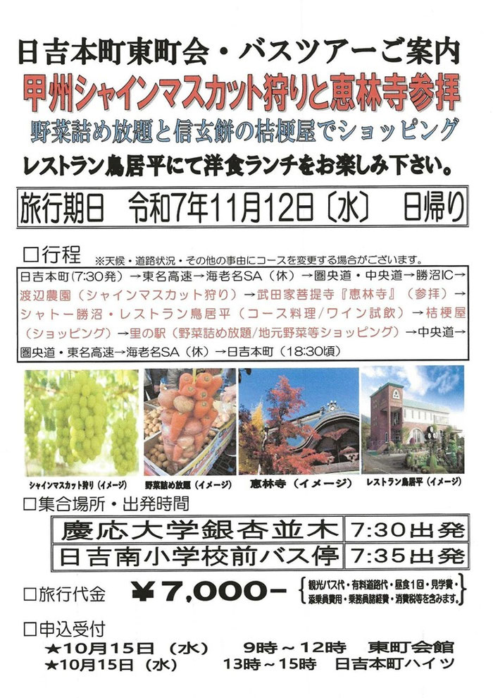 ★毎年恒例の研修バスツアーのお知らせです。今年も皆さんに楽しんでいただけるツアーを企画いたしました。奮ってのご参加をお待ちしております。