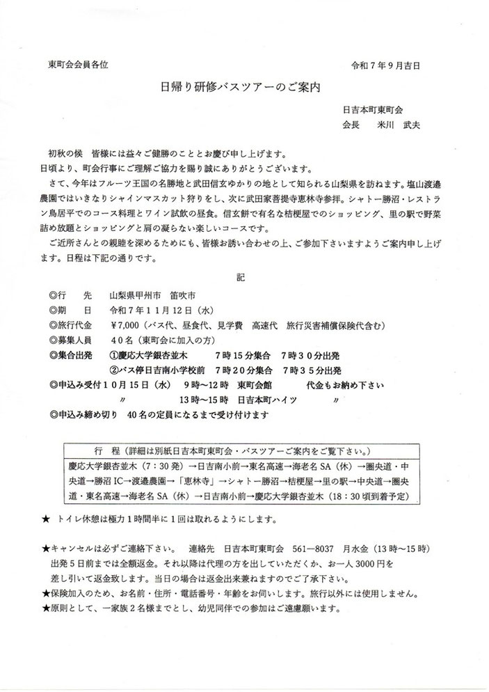 こちらでは、東町会より回覧版でお知らせしている情報を載せていきます